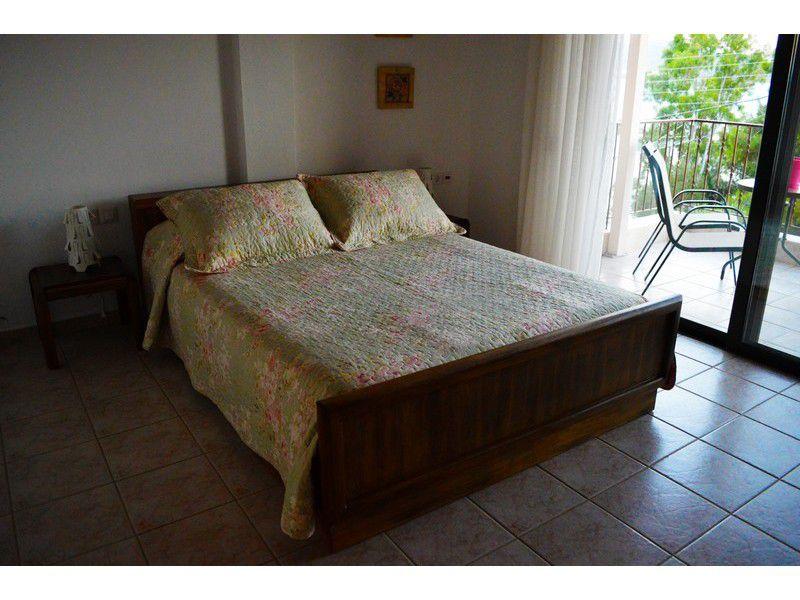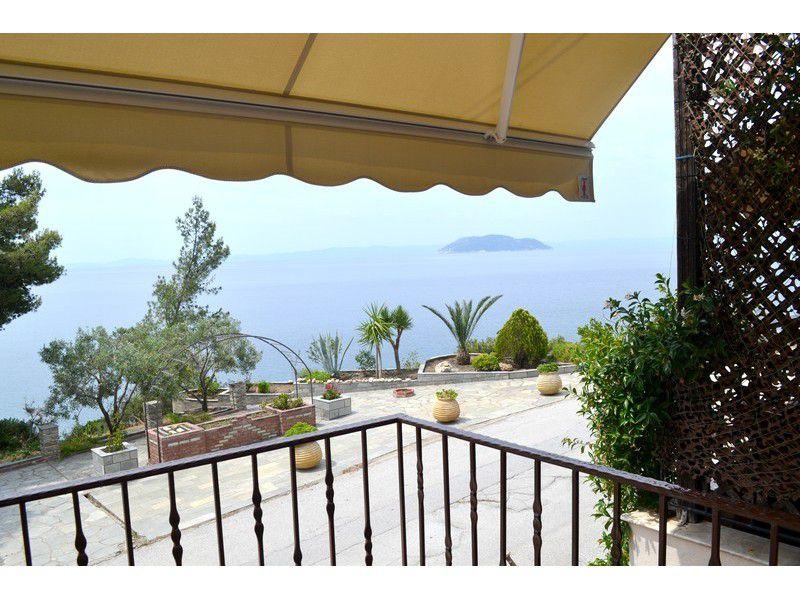 Έχει μεγάλη μπαλκονόπορτα που οδηγεί σε ένα μεγάλο μπαλκόνι με θέα τη θάλασσα.