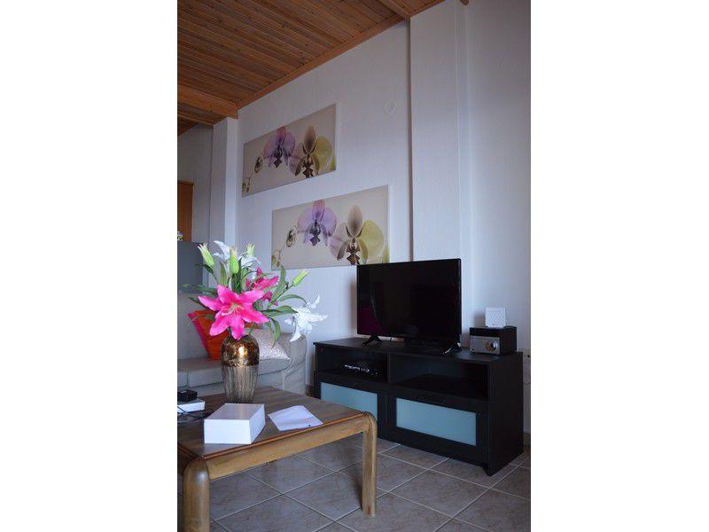 Διαθέτει μεγάλο χειροποίητο τραπέζι φαγητού και ένα μπαλκόνι 10τμ, με ξύλινο τραπέζι και καρέκλες.